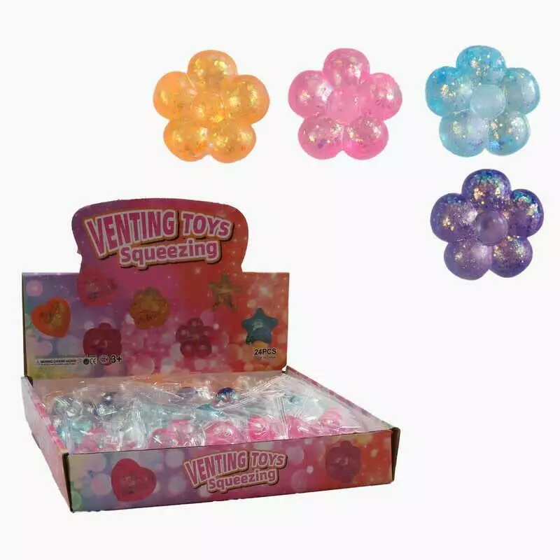 Гра антистрес C 68822 (22) ЦІНА ЗА 24 ШТУКИ В БЛОЦІ, "Квіточка", розмір 5.5х5.5х1.5 см, гелеве наповнення, блискітки, в коробці