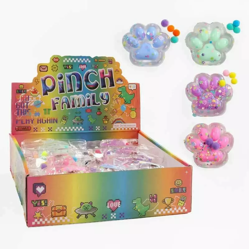 Гра антистрес C 71320 (24) ЦІНА ЗА 16 ШТУК В БЛОЦІ, "Лапка", м`які кульки, блискітки, розмір 7х6.5х2.5 см, в коробці