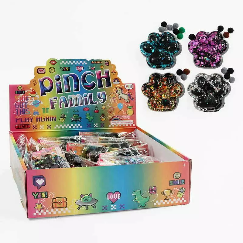 Гра антистрес C 71324 (24) ЦІНА ЗА 16 ШТУК В БЛОЦІ, "Лапка", м`які кульки, блискітки, розмір 7х6х2.5 см, в коробці