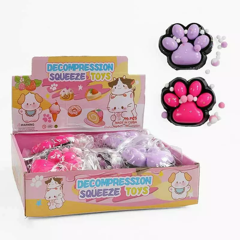 Гра антистрес C 71330 (18) ЦІНА ЗА 8 ШТУК В БЛОЦІ, "Велика лапка", м`які кульки, блискітки, розмір 13х11х4 см, в коробці