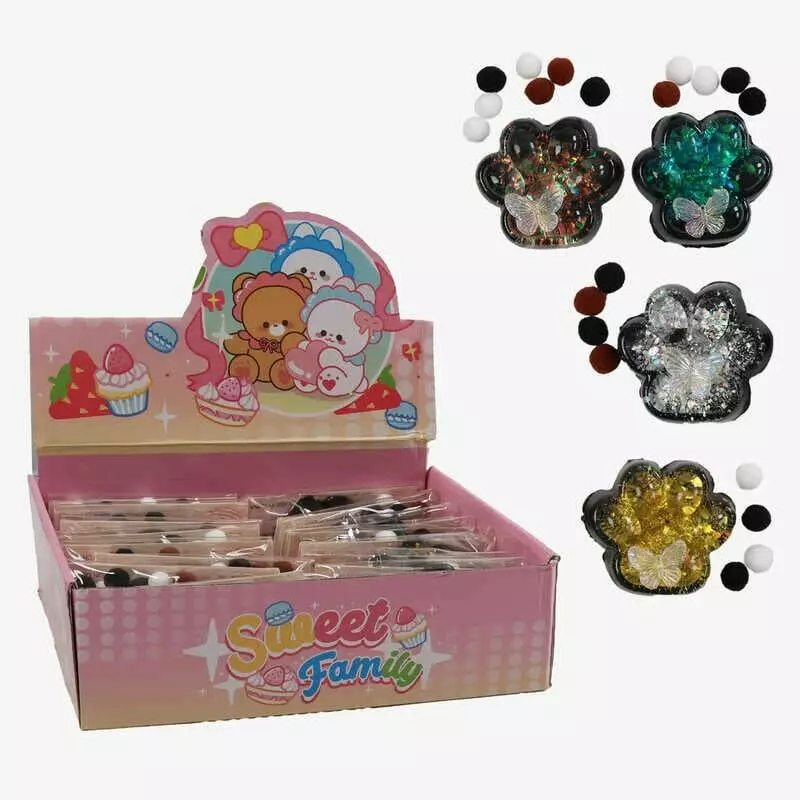 Гра антистрес C 72502 (24) ЦІНА ЗА 16 ШТУК В БЛОЦІ, "Лапка", блискітки, розмір 6.5х2х6.5 см, метелик, м`які кульки, в коробці