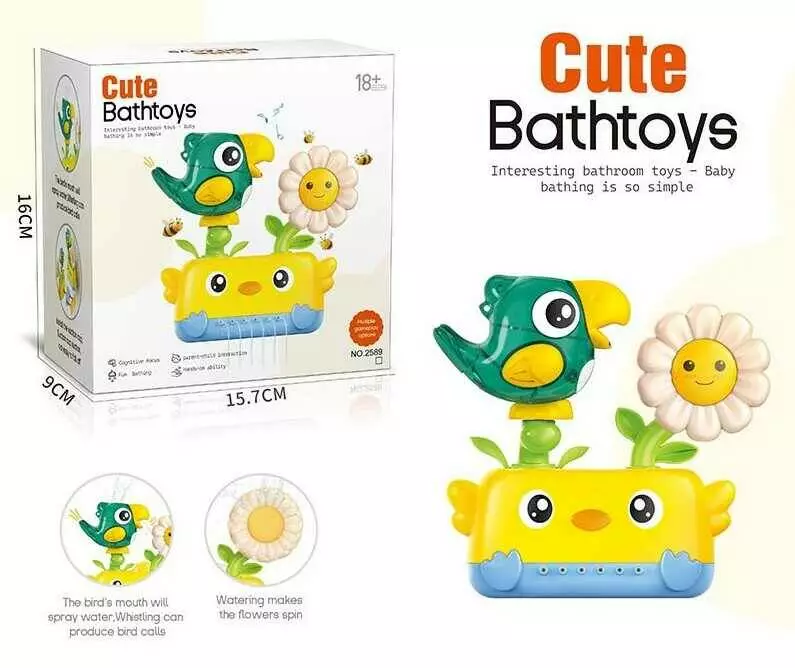 Гра для ванни 2589 (60) "Папуга з квіткою", механічний принцип роботи, присоски, в коробці