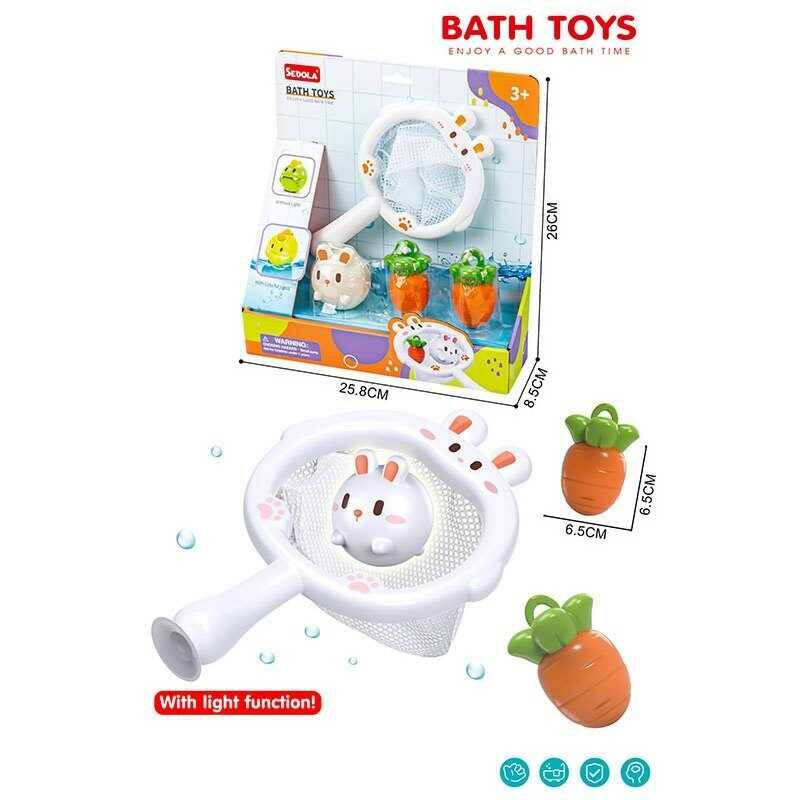 Гра для ванни 8366-68 A (60) сачок, 3 гумові фігурки: кролик, 2 морквини, в коробці