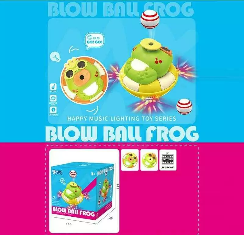 Музична іграшка QB 164 Y (72/2) “Жабка”, розмір - 13.5х13.5х11.5 см, підсвічування, колесо вільн. ходу, тримає м’яч у повітрі, мелодії, в коробці