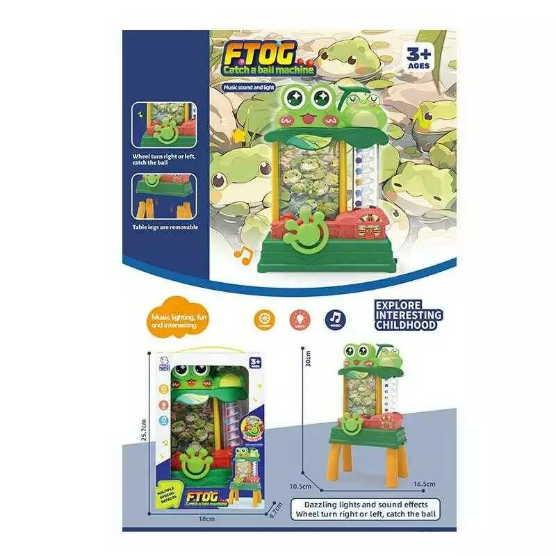 Гра з кульками QB 132 Y (48) “Жабенятко”, звук, підсвічування, автоматичний підіймач, кольорові кульки, кермо, працює від батарейок, в коробці