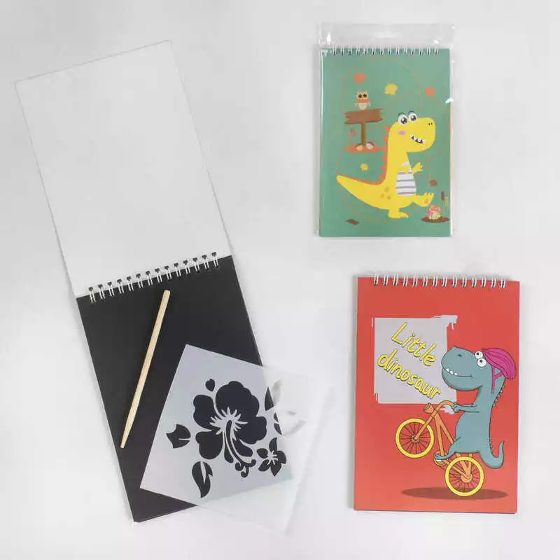 Гравюра C 46745 (400) "Динозаври", 2 види, блокнот на пружині, 10 аркушів, трафарет, штихель, в пакеті