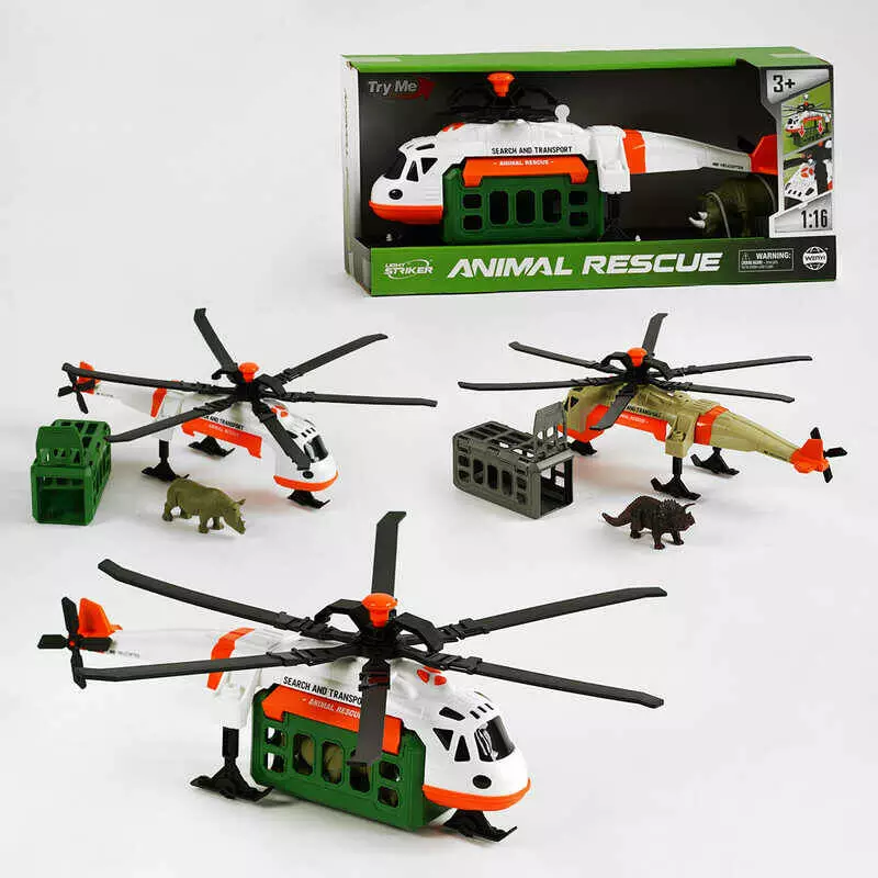 Гелікоптер WY 960 AB (18) 2 види, звук, підсвічування, клітка з динозавром, рухливі лопаті, масштаб 1:13, в коробці