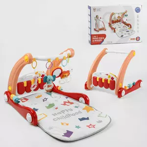 Ходунки 2в1 HE 0634 (12) игровой музыкальный коврик, пианино, 4 погремушки с прорезывателем, зеркальце, в коробке