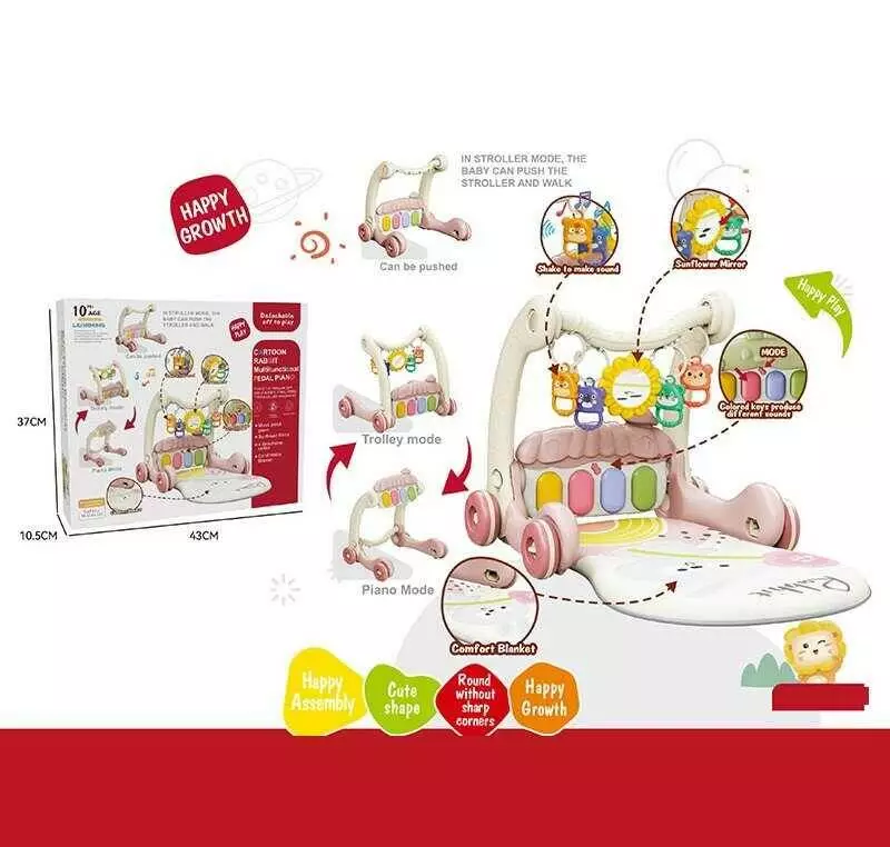 Ходунки 368-45 B (16) 3в1, килимок, музична панель, регулювання гучності, музика, підсвічування, 4 брязкальця, дзеркальце, в коробці
