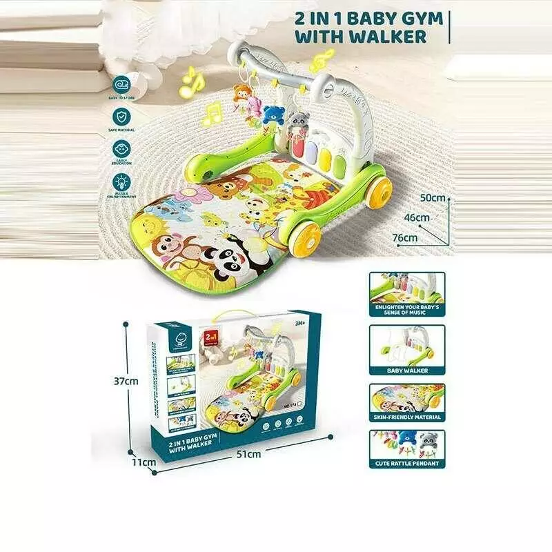 Ходунки 974 (16) 2 в 1, килимок, піаніно, ноти, звуки тварин, мелодії, підсвічування, 4 підвіски, брязкальця, в коробці