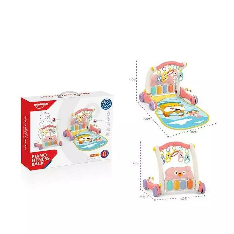Ходунки HE 0613 (12) 2в1, килимок, музична панель, музика, підсвічування, 5 підвісок, люстерко, брязкальця, в коробці
