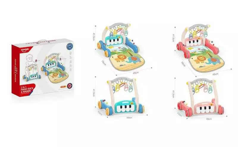 Ходунки HE 0637 /0638 (6) 2 види, 2в1, килимок, брязкальця-підвіски, піаніно, мелодії, пальчикові лабіринти, в коробці
