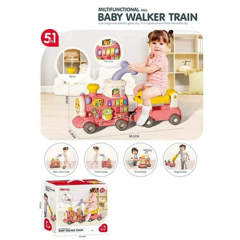 Ходунки-каталка 6065 (6) піаніно, звук, толокар, підсвітка, годинник, сортер, рухомі елементи, парогенератор, звук потяга, на батарейках, в коробці