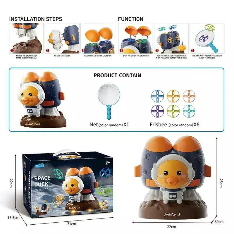 Запускач 5000 C (24) "Каченя-космонавт", фризбі, сачок, механічний, в коробці