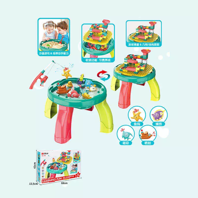Ігровий столик з конструктором 3370 (6) 106+ елементів, розмір 41х41х30 см, 3 в 1: конструктор, магнітна риболовля, пісочниця, вудочка, в коробці