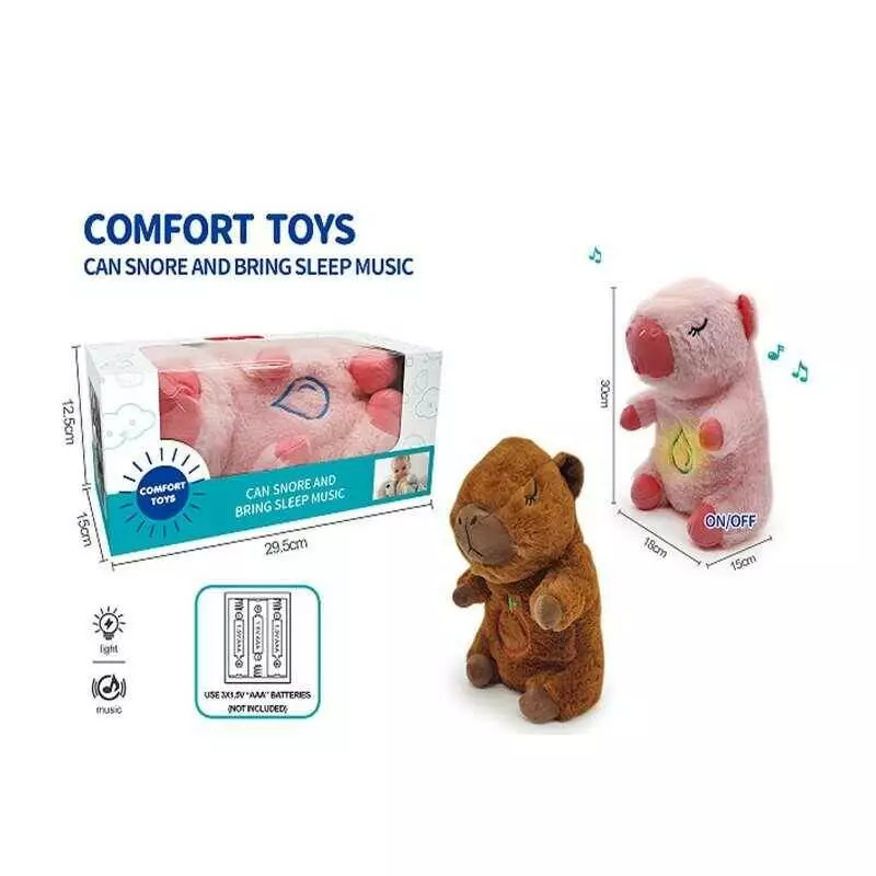 Інтерактивна іграшка 853-3 (48) 2 кольори, "Капібара", висота: 30 см, сплюшка, для сну, дихає, на батарейках, колискові, підсвічується, в коробці