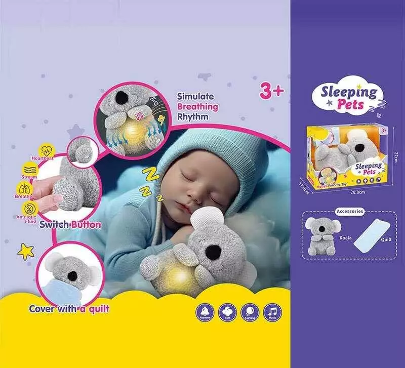 Інтерактивна іграшка 933-186 E (18) "Коала", "Сплюшка", висота 27 см, для сну, дихає, підсвітка, мелодія, звук серцебиття, в коробці