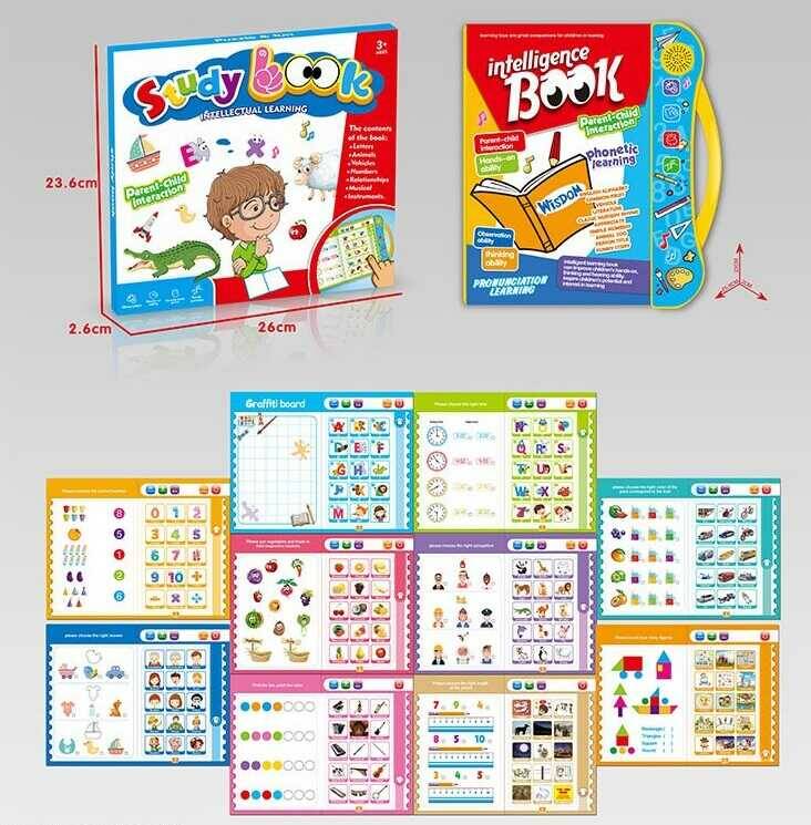 Інтерактивна книга 3101 (60/2) 10 сторінок, маркер, іспит, озвуч. англ. мовою, пісні, інструменти, транспорт, тварини, фрукти, абетка, в коробці