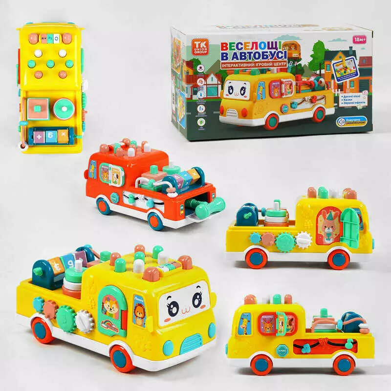 Інтерактивний автобус TK - 32602 (24) "TK Group", ОЗВУЧУВАННЯ УКРАЇНСЬКОЮ МОВОЮ, пісні, 7 казок, ігрові режими, стукалка, міні-ігри, в коробці