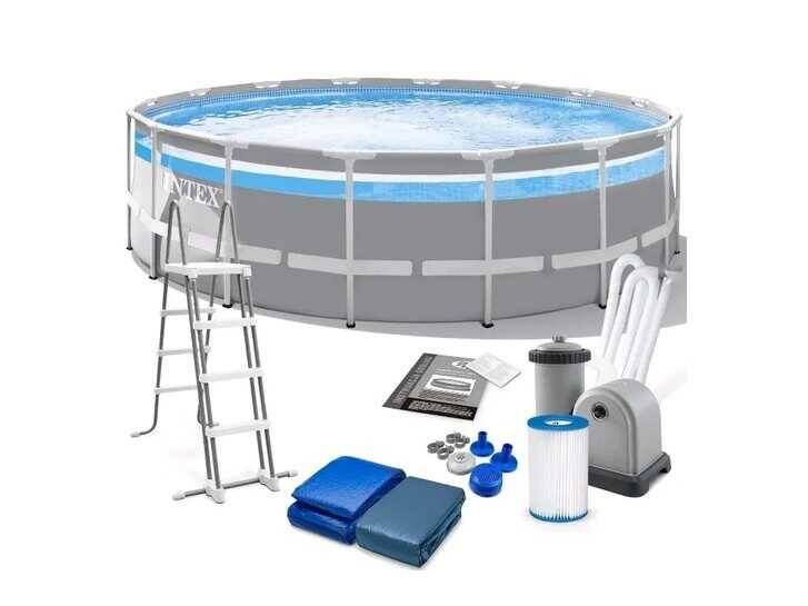 Intex Басейн каркасний 26730 (1) об`єм(90):19114л, розмір:488х122см, картріджний фільтр-насос 5678 л/год, драбина, тент, підстилка