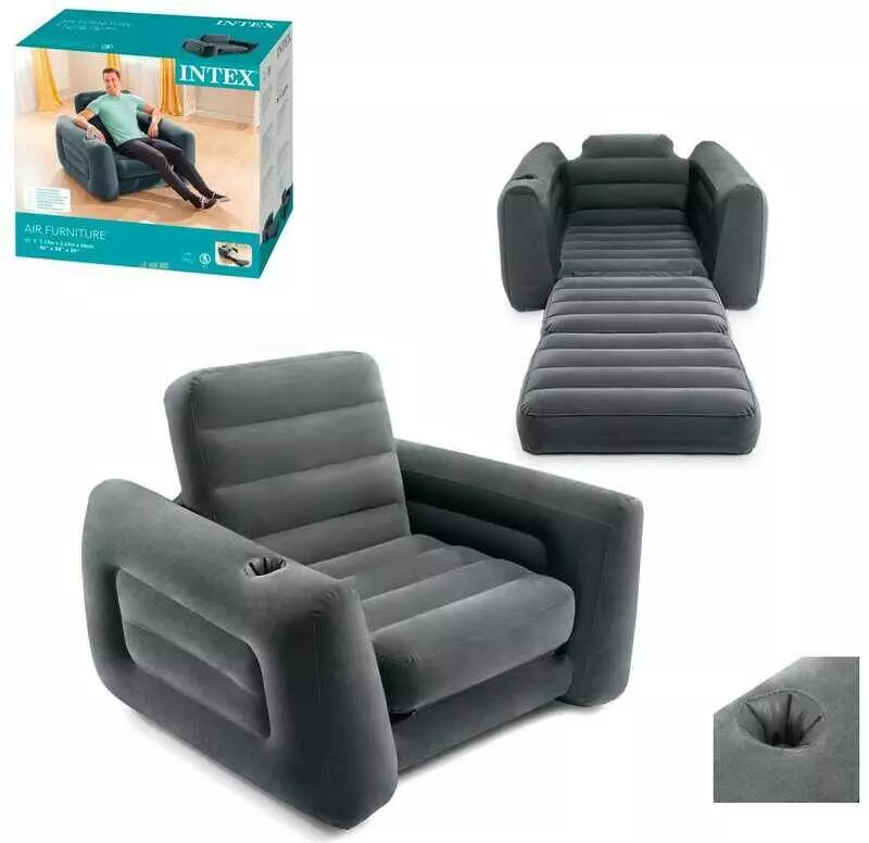 Intex Надувне крісло 66551 NP (2) 117х224х66 см., розкладається, з підсклянником, в коробці