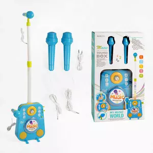 Караоке 1093 (18/2) підсвічування, 2 мікрофони, мелодії, підключення до MP3, регулювання гучності, запис, зміна голосу, кабель 3.5 мм, в коробці