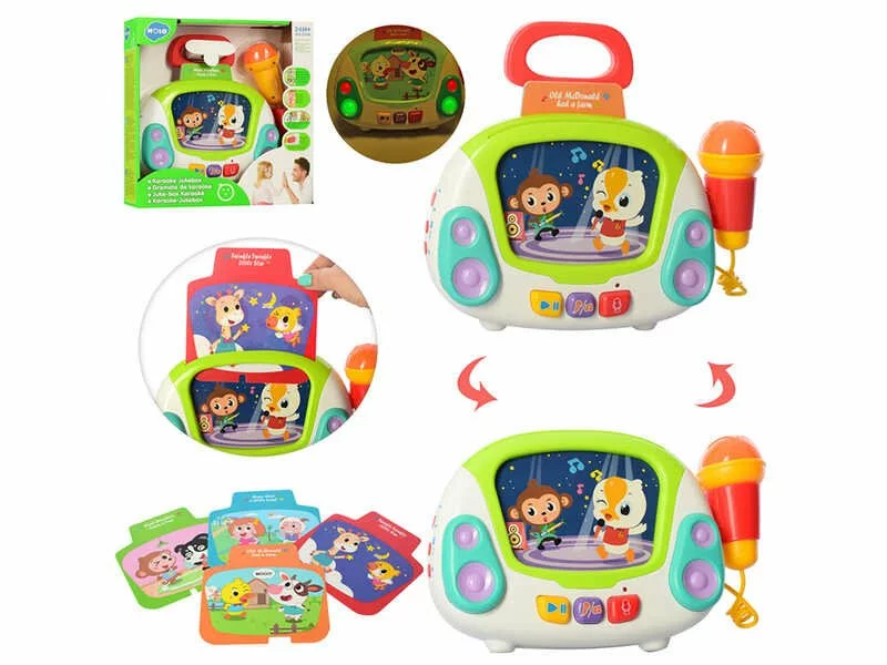 Караоке 3138 (12/2) подсветка, 4 музыкальных карточки, веселые мелодии. звукозапись, микрофон, в коробке