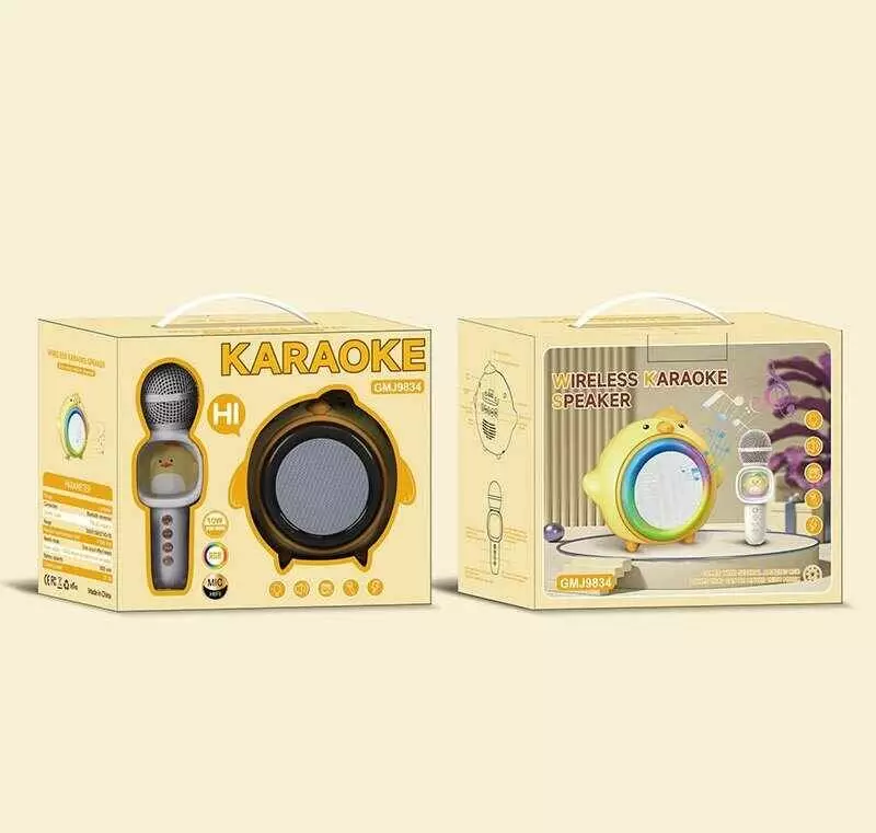 Караоке GMJ 9834 (24) 1 мікрофон з підсвіч,вбуд акум, Bluetooth, слот для TF Card, USB-type-c кабель, USB-роз’єм, AUX-роз’єм, колонка з підсвіч, зміна