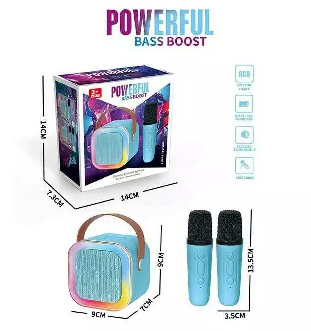 Караоке K 12-4 (48/2) 2 мікрофони, вбуд. акум., Bluetooth, слот для TF, type-С, AUX, зміна голосу, мінус, регул. гучності/світла, в коробці