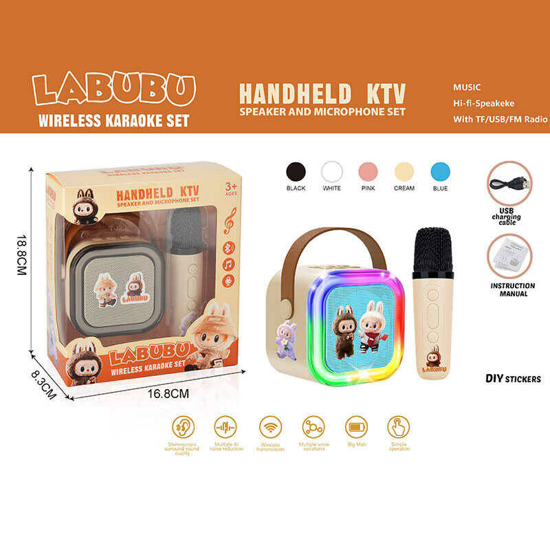 Караоке K 12 A (120/2) 1 мікрофон, Bluetooth, слот для TF-Card, type-С, AUX, мінус, зміна голосу, регулюв. гучності та світла, в коробці, МІКС