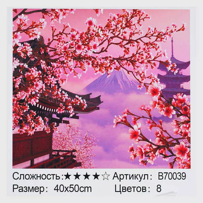Картина за номерами + Алмазна мозаїка B 70039 (30) "TK Group", 40х50 см, "Сакура", в коробці