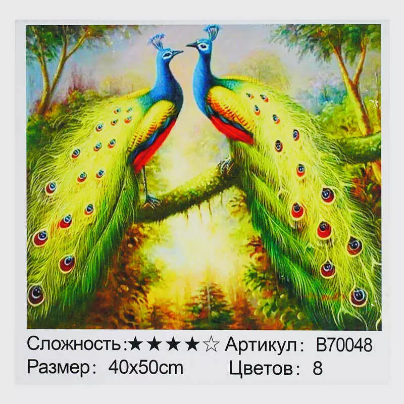Картина за номерами + Алмазна мозаїка B 70048 (30) "TK Group", 40х50 см, "Пави", в коробці