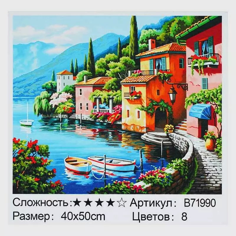Картина за номерами + Алмазна мозаїка B 71990 (30) "TK Group", 40х50 см, "Ранок на березі озера", в коробці