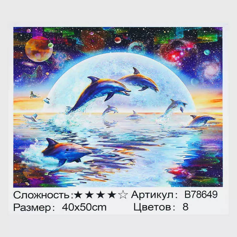 Картина за номерами + Алмазна мозаїка B 78649 (30) "TK Group", 40x50 см, “Дельфіни”, в коробці
