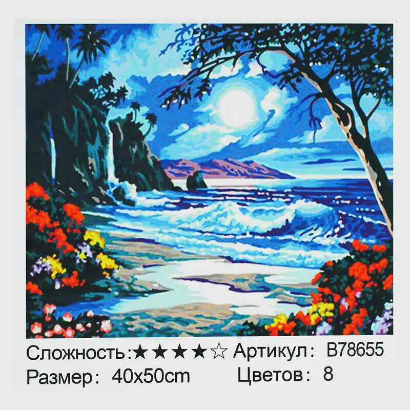 Картина за номерами + Алмазна мозаїка B 78655 (30) "TK Group", 40х50 см, “Тропічний пляж”, в коробці