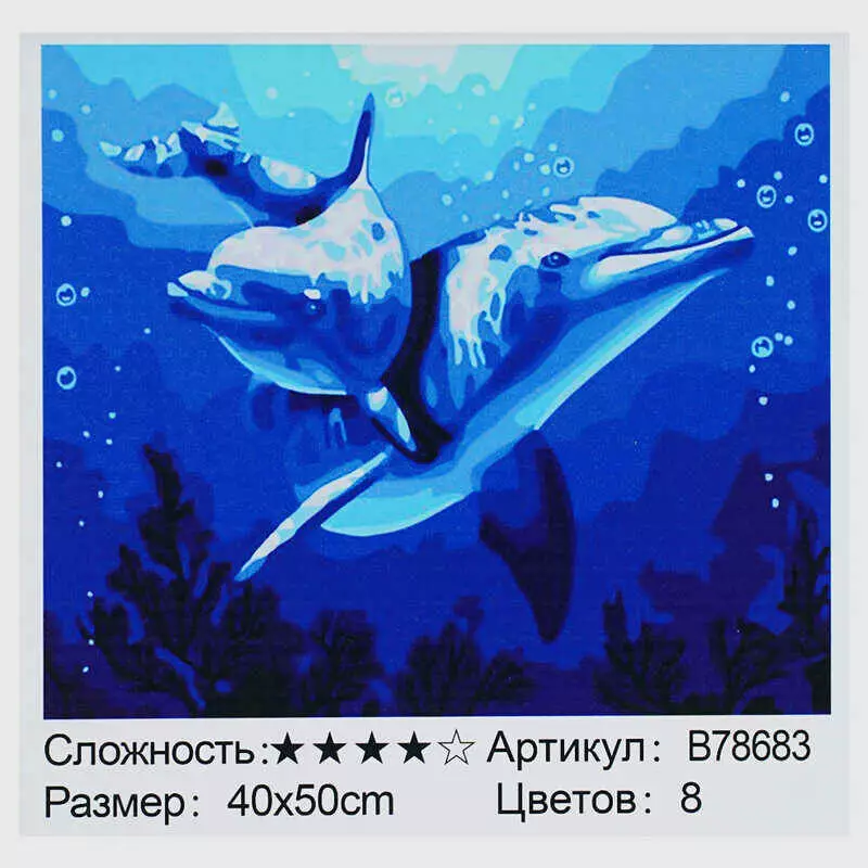 Картина за номерами + Алмазна мозаїка B 78683 (30) "TK Group", 40x50 см, “Дельфіни”, в коробці