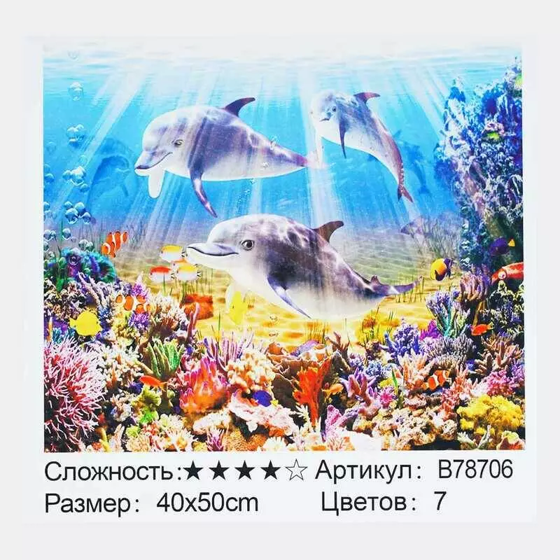 Картина за номерами + Алмазна мозаїка B 78706 (30) "TK Group", 40х50 см, "Дельфіни", в коробці