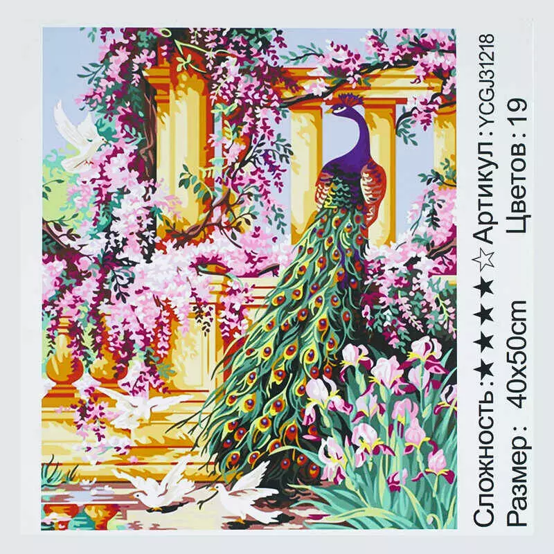 Картина за номерами YCGJ 31218 (30) "TK Group", 40х50 см, "Сад з павами", в коробці