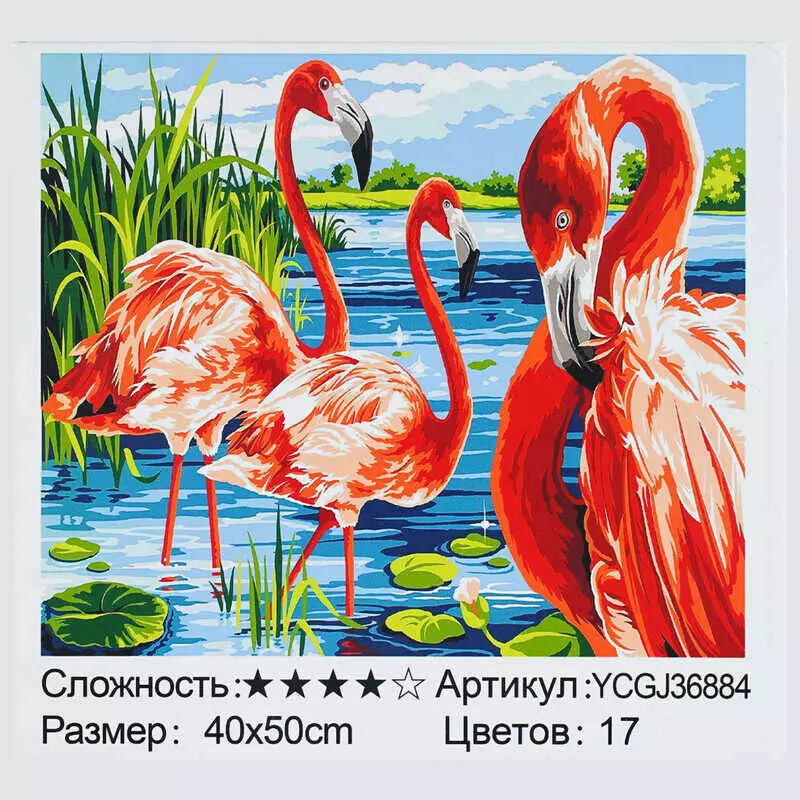 Картина за номерами YCGJ 36884 (30) "TK Group", 40х50 см, “Яскраві фламінго”, в коробці