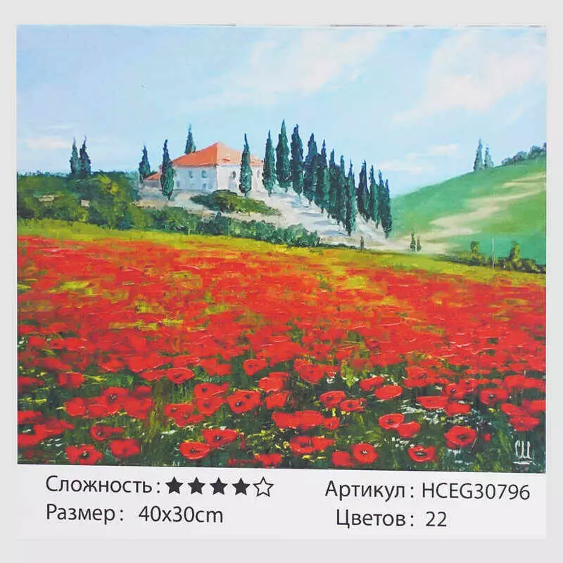 Картина за номерами HCEG 30796 (30) "TK Group", "Макове поле", 40*30см, в коробці