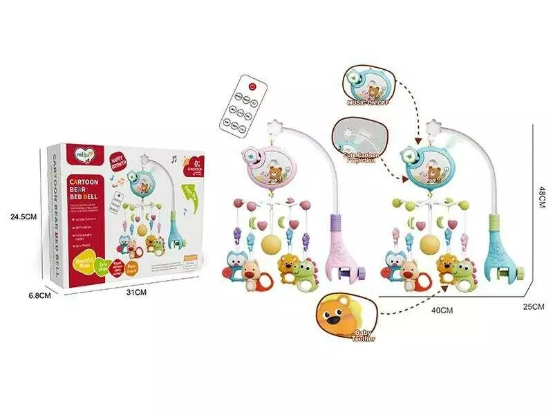 Карусель музична 368-11 (36) 2 кольори, мелодії, підсвічування, оберт на 360, брязкальця, пульт, в коробці