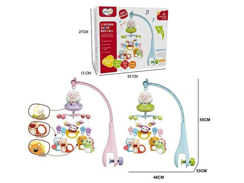 Карусель музична 368-14 (36) 2 кольори, мелодії, підсвічування, таймер, 5 підвісок-брязкалець, пульт, в коробці