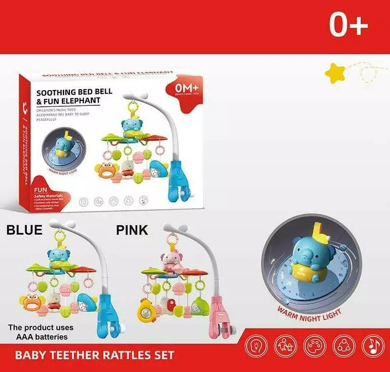 Карусель музична YD 750-28 (16/2) 2 кольори, мелодія, звуки, світло, оберт на 360, від батарейок, брязкальця, таймер, пульт, Bluetooth, в коробці