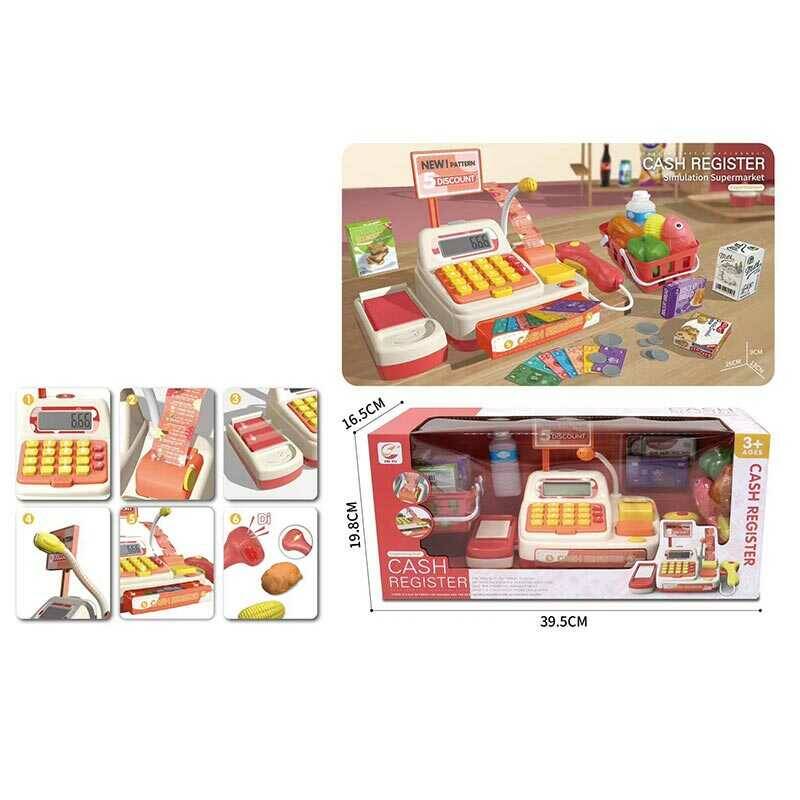Касовий апарат 8103 (18/2) на батарейках, звук, підсвічування, калькулятор, сканер, мікрофон, відсік для грошей, іграшкові гроші, продукти, в коробці