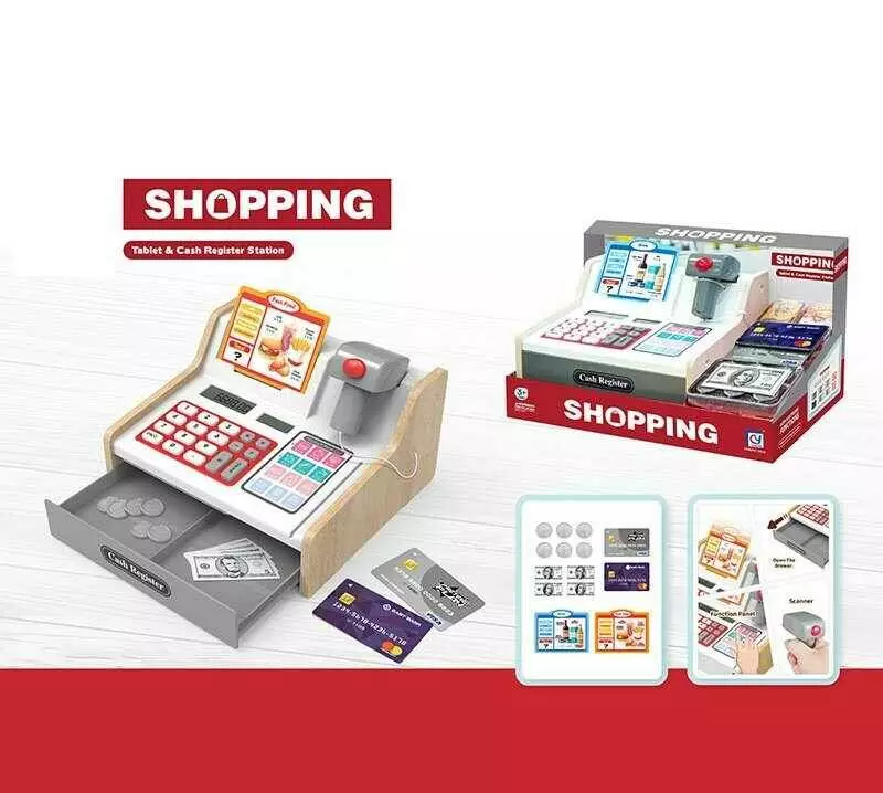 Касовий апарат 818-503 (16/2) вбудований акумулятор, калькулятор, іграшковий сканер, звуки, підсвічування, іграшкові гроші, муляжі продуктів, в коробц