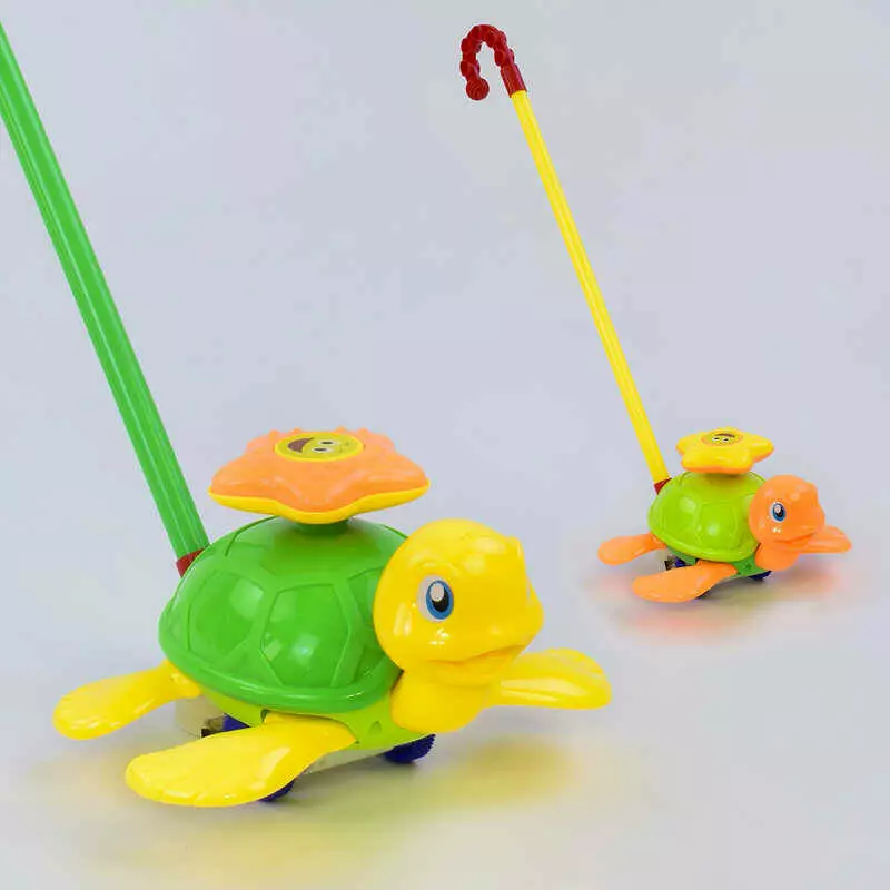 Каталка 0361 (72/2) "Черепашка" на паличці рухає ніжками, з брязкальцем, 2 кольори, в пакеті