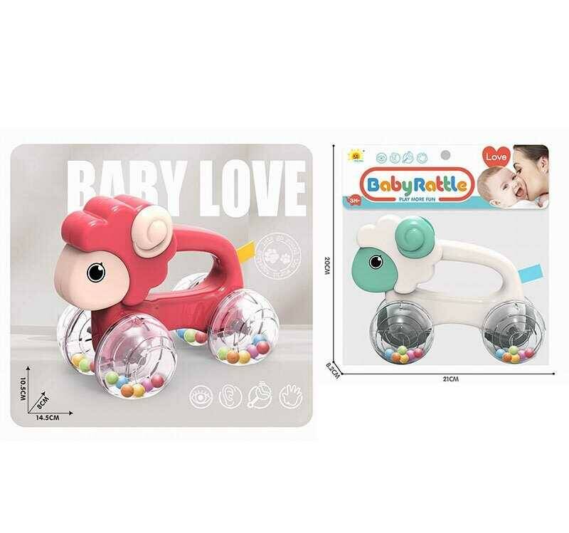 Каталка 2859-2 (192/2) 2 кольори, довжина 14.5 см, брязкальце: прозорі колеса з кульками, ручка для тримання, в пакеті
