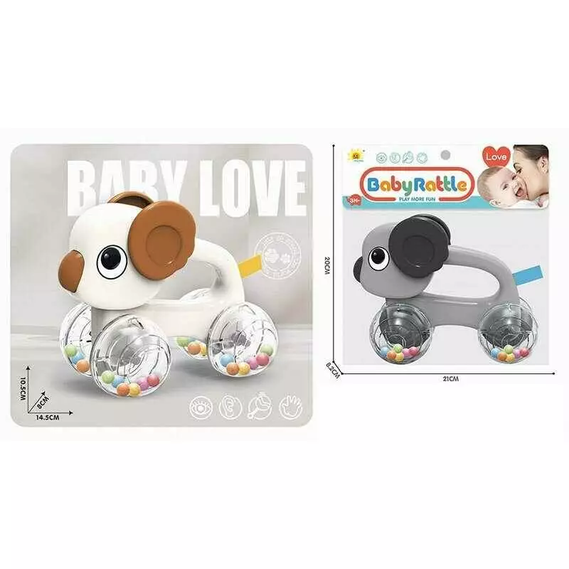 Каталка 2859-4 (192/2) 2 кольори, довжина 14.5 см, брязкальце: прозорі колеса з кульками, ручка для тримання, в пакеті
