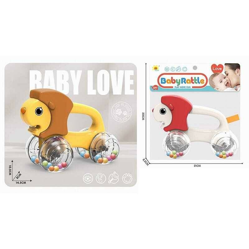 Каталка 2859-5 (192/2) 2 кольори, довжина 14.5 см, брязкальце: прозорі колеса з кульками, ручка для тримання, в пакеті
