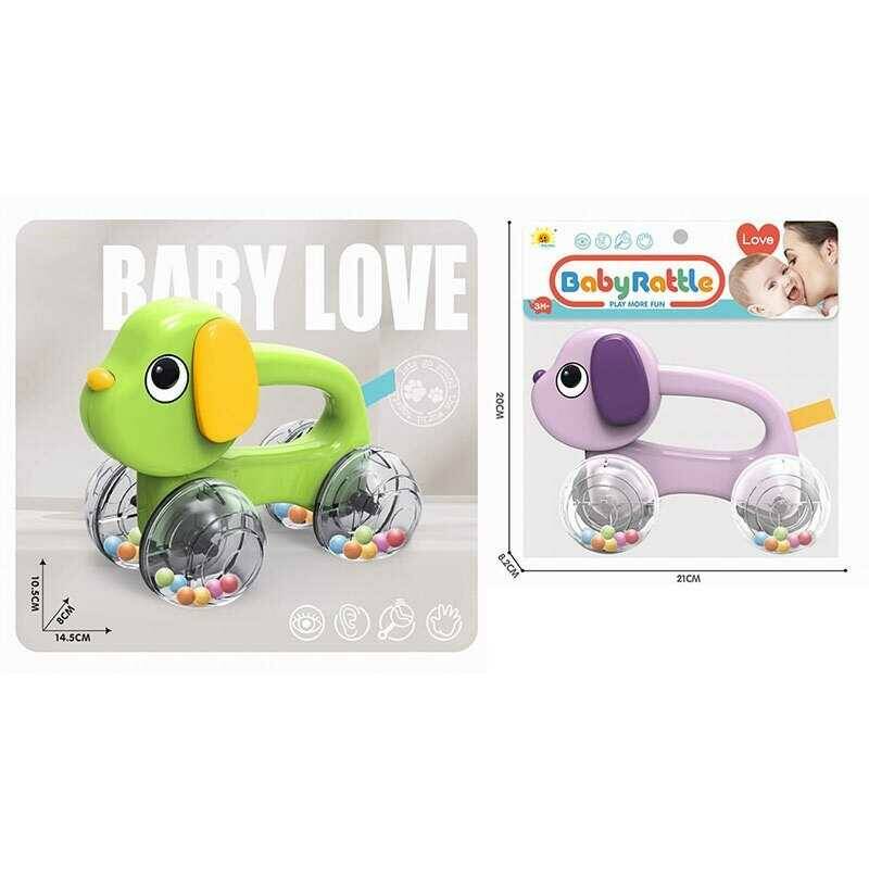 Каталка 2859-6 (192/2) 2 кольори, довжина 14.5 см, брязкальце: прозорі колеса з кульками, ручка для тримання, в пакеті